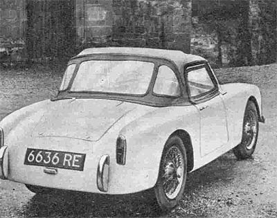 A full range of instruments is provided, well sited on the facia. The tachometer reads up to 8,000 r.p.m., and the matching speedometer is just about accurate. At night the panel lighting does not reflect in the screen; strangely enough, there is no illumination for the water temperature gauge and ammeter. The dipswitch and the button for the single Windtone horn form one unit, on the facia, which can be reached without removing a hand entirely from the steering wheel. The scuttle is low and the action deep enough to permit an adequate spread of vision; the coaming over the instrument panel is sponge-padded. The head lamps have a good range, and in favourable circumstances give sufficient illumination for speeds up to 80 m.p.h. Self-parking screen wipers are provided; they work well at speed, but the blades did not park flat. The direction indicators are operated by a facia-mounted switch which incorporates a prominent warning lamp. They are not self-cancelling. Side-screens are easily fitted, and can be removed or put into position without getting out of the car. In wet weather the windscreen of the closed car mists-up, especially when traveling slowly, and although a heater unit is listed as an extra, no demisting slots are provided in the top of the scuttle; a small flap is formed in the bottom of each side-screen, and if these are left open the misting-up is not so severe. In heavy rain and at speed the side-screens would be more effective if there were some form of clip at the top of each screen pillar, by which they could be secured.