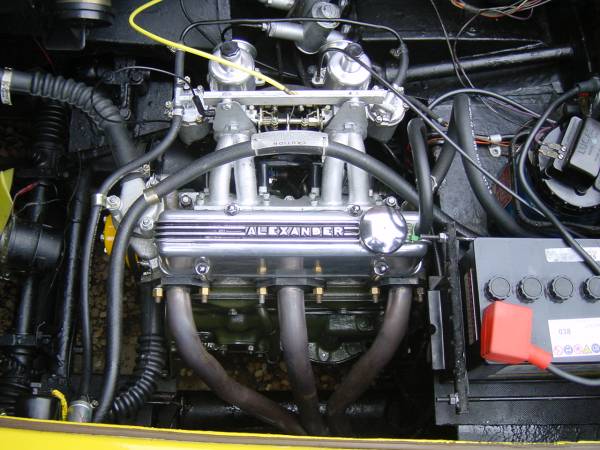 | Engine of the car, with Alexander cross flow 7 port Alloy head. |